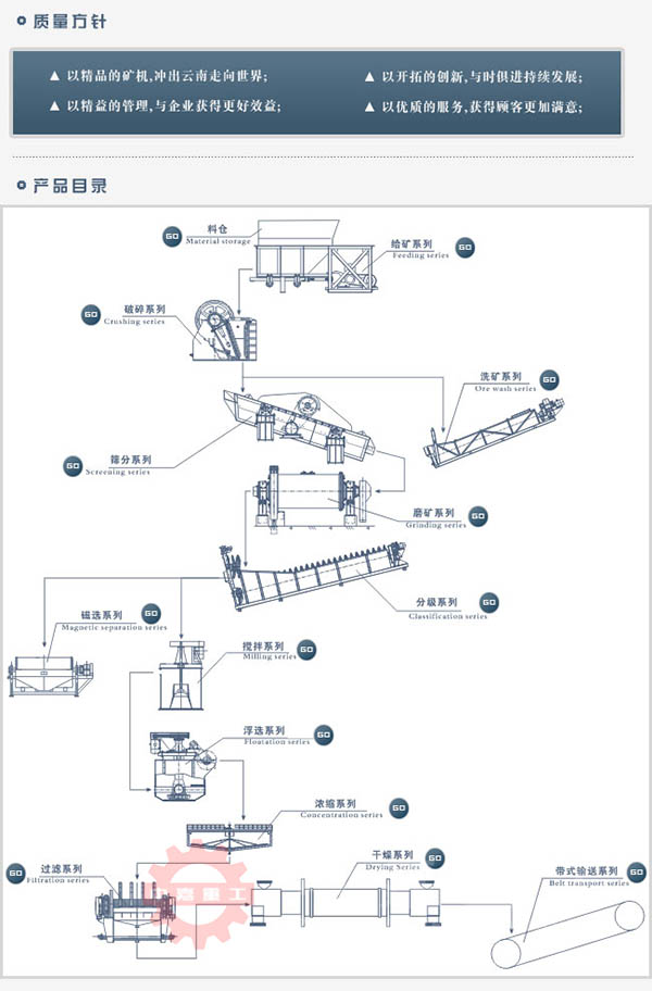 浮选生产工艺是选矿应用中重要的工艺之一,使用广泛。浮选生产线广泛用于铜矿、镍矿、铁矿、金矿、石灰石等各种金属和非金属矿石的精矿选取,具有高产、低耗、处理量高、经济合理等优点。