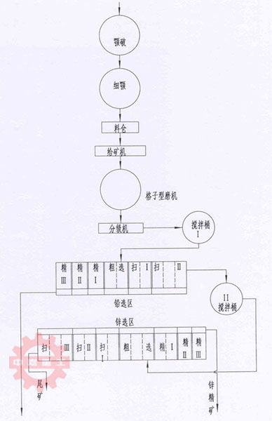 选铅锌矿的工艺流程,根据矿石类型不同,则选择不同的选矿方法,也就需要不同的铅锌矿选矿设备。硫化矿石通常用浮选方法。氧化矿石用浮选或重选与浮选联合 选矿,或硫化焙烧后浮选,或重选后用硫酸处理再浮选。对于含多金属的铅锌矿石,一般用磁—浮、重—浮、重—磁—浮等联合选矿方法 铅锌矿选矿设备浮选工艺。