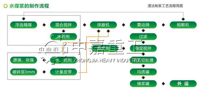 2、湿法制浆工艺又分为三种:分别是高浓度磨矿制浆工艺、中浓度磨矿制浆工艺和中、高浓度磨矿制浆工艺,此外还有浮选精煤制浆工艺与煤泥制浆工艺等。具体的每种工艺的详细方法请联系中嘉重工销售人员获得专业解答。
